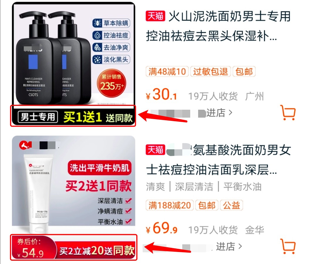我們在淘寶、拼多多、京東等平臺上,經常看到很多商家在商品的主圖上做標記,而且那些做標記的商品銷量都很好,例如某洗面奶的商品主圖上買1送1的活動標簽。抖音小店從正式上線截止目前不到4個月時間,近百萬家商家入駐,部門商家也已經開始給自己抖音小店的商品主圖添加上此類活動標簽。