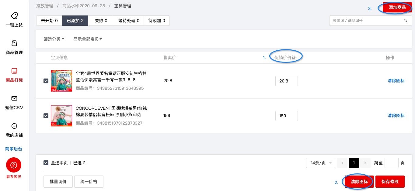 選擇要投放的主圖位置和投放主圖的時間,并且添加要使用這個主圖的商品,修改商品促銷價價簽,將價格修改成和主圖標簽/水印上的價格,最后點擊立即投放。